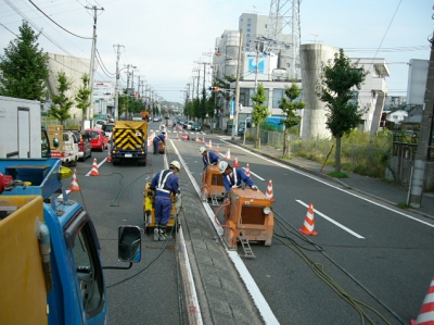 道路面(舗装)やコンクリート床板などを、精度の高いダイアモンドブレードを装着させた、低騒音型のカッター機械で切断します。