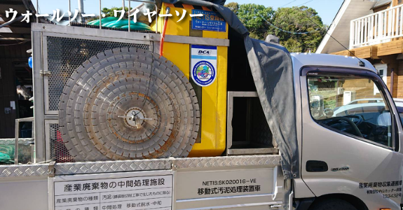 ダイアモンド砥粒を埋め込んだワイヤーをコンクリート構造物に巻きつけて切断する工法です。