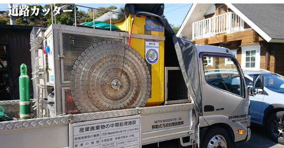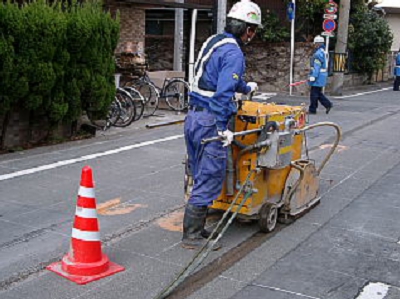 道路面(舗装)やコンクリート床板などを、精度の高いダイアモンドブレードを装着させた、低騒音型のカッター機械で切断します。