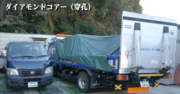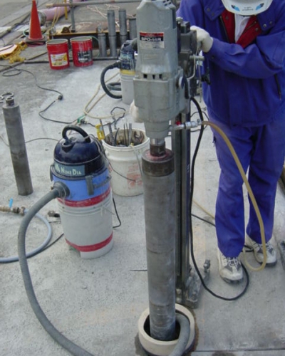 コンクリート構造物などの様々な物を、高硬度のダイアモンドを埋め込んだ筒状の刃(ビット)を機械に装着させ、高速で回転させて、穿孔します。