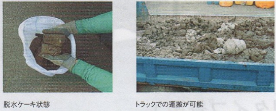 工事現場で出る排水を回収し現場で脱水することによって、トラックで簡単に処理土を運搬することが可能になります。また、脱水した水は現場で再利用する事によって水の節約になり、現場での連続作業時間を大幅にアップします。(マジカル・ベコップは河川等の環境を守る装置です)